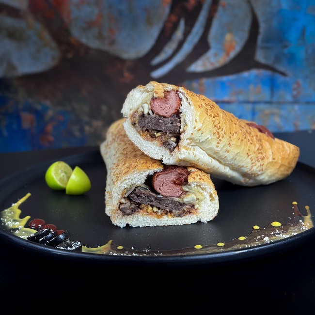 یک عدد هات داگ گوشت، یک عدد برگر دست ساز گوشت گوساله 150 گرمی، پنیر پیتزا، سس کف مخصوص، قارچ، چیپس خلالی، نان هات داگ